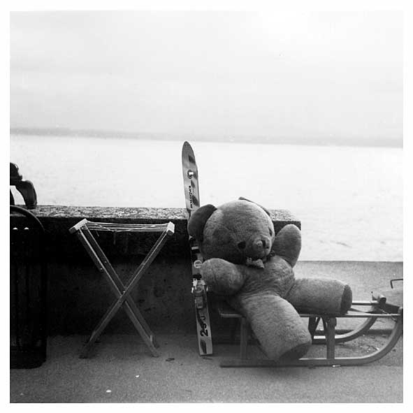 Le même jour : un nounours prêt pour les sports d'hiver (oui, je sais, le lac penche dans l'autre sens et, en plus, cette fois, j'avais le temps)