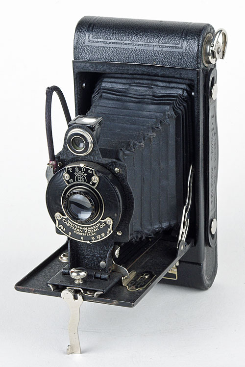 Caractéristiques : Le 2A date de 1926. il est donc raisonnable de penser que celui là est un peu plus vieux. Comme sur le Rainbow Hawk-Eye, le déploiement du soufflet n'est pas automatique et le remplacement de la pellicule se fait en retirant toute la partie avant.