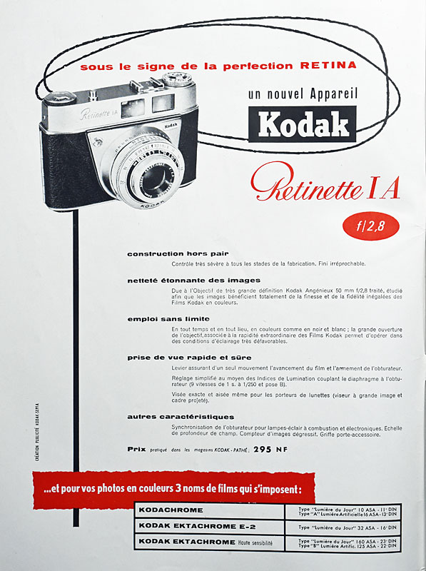 Caractéristiques : Boîtier 24 x 36 d'un grand classicisme. Des monceaux de Retinette ont été vendus dans les années 50 et 60. Celle là a été construite de 1959 à 1961.