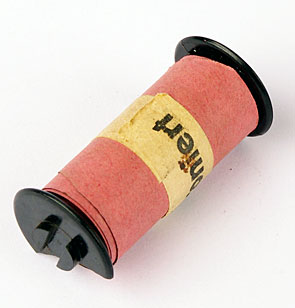 Pellicule de 35 mm de large protégée par un papier support au dos duquel sont imprimés les différent Nos de vues. Cette bobine est spécifique à la marque Norisan. Inutile de préciser qu'on en trouve pas au supermarché du coin.