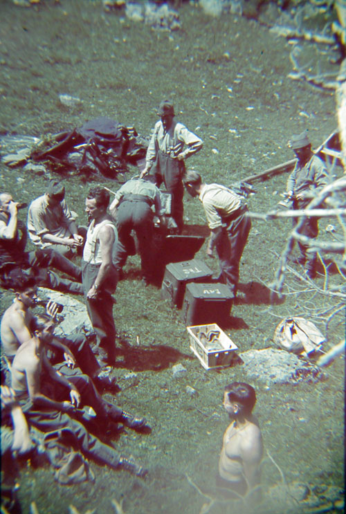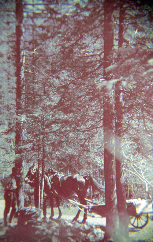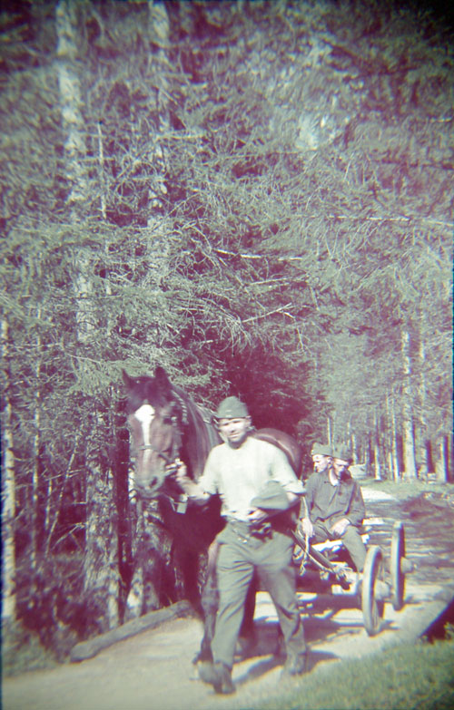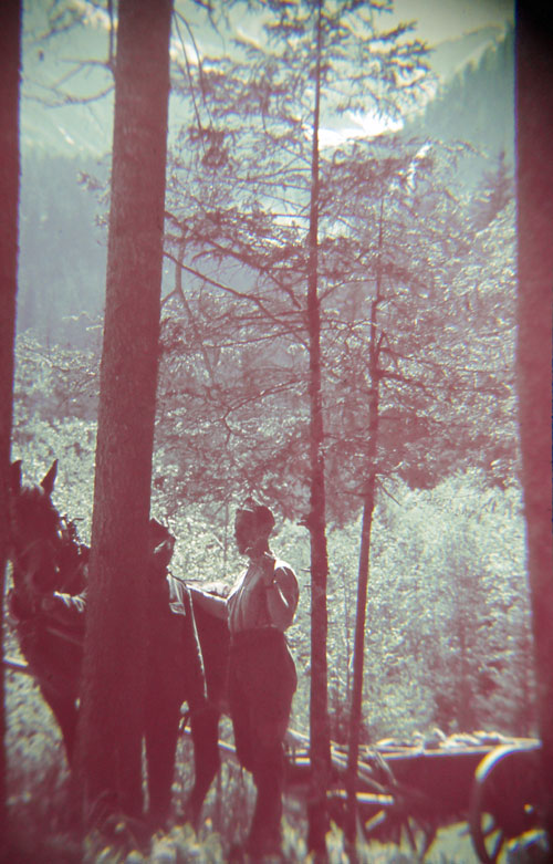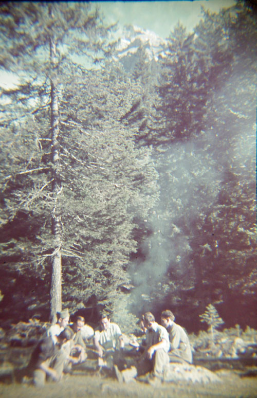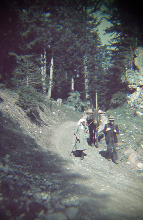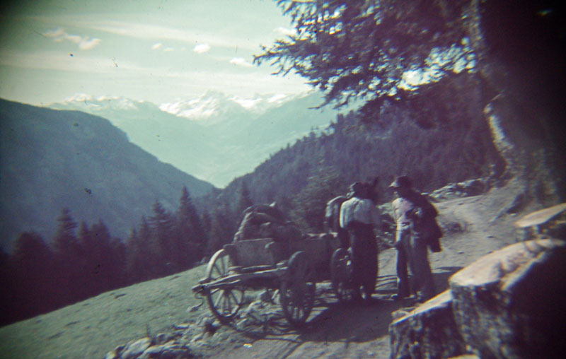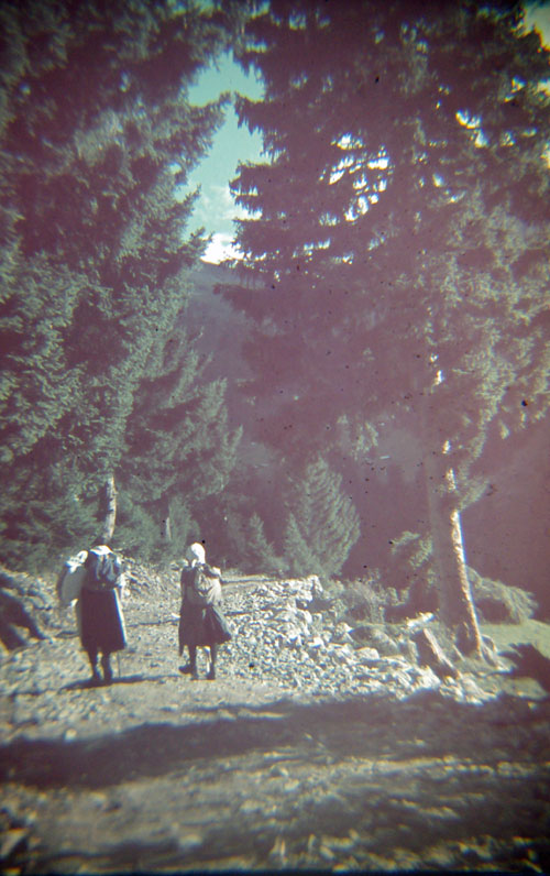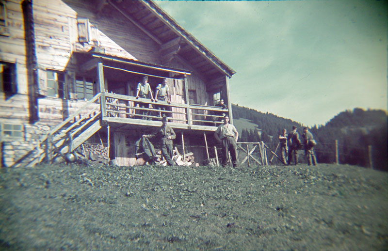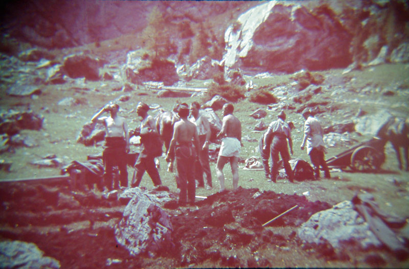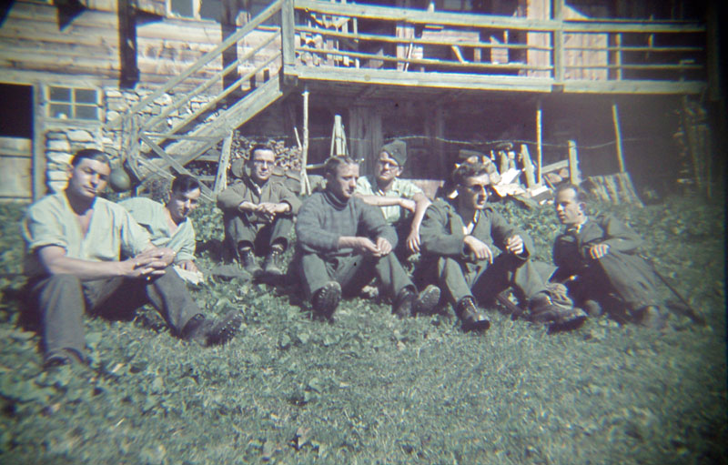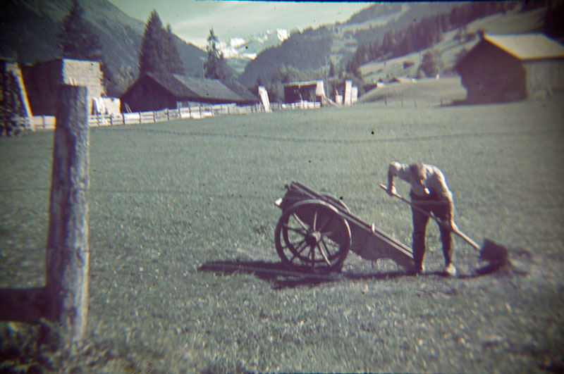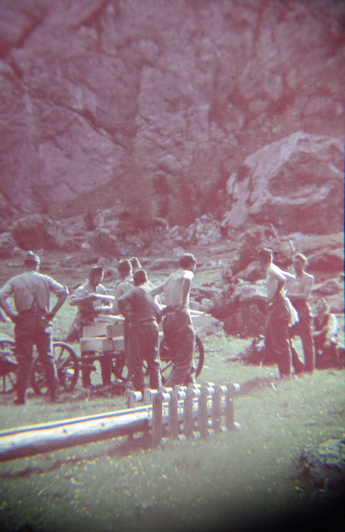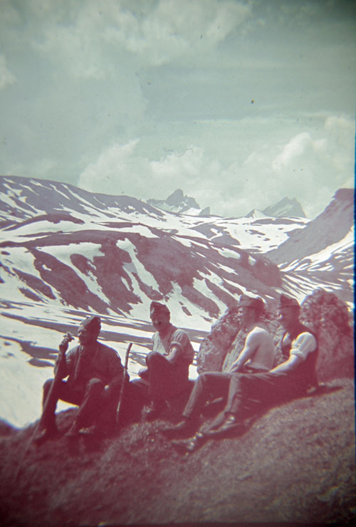 Militaires suissesJe pense qu'il s'agit du même photographe que pour les portraits en studio. Les photos ont manifestement été prises pendant une période militaire. Peut-être un "cours de répétition" normal pour les citoyens suisses mais vu la date probable des prises de vues, ça pourrait aussi être "la Mob" entre 39 et 45. Comme pour l'autre boite de diapositives, la numérisation a été faite à l'aide de la vieille visionneuse Scoparette de mon papa montée "artisanalement" en face de mon reflex numérique. Soyons francs : heureusement qu'il n'y a pas trop de photos d'architecture car ça déforme pas mal. Je pense à une visite des épouses. C'est un peu ce qui me fait penser à la mob. Sur un cours de répétition de trois semaines je ne pense pas que ça se produise (en même temps, j'ai fait mon service militaire en France. Un an pour tirer 10 cartouches à la MAT 45, le pacte de Varsovie pouvait débarquer tranquille :-)