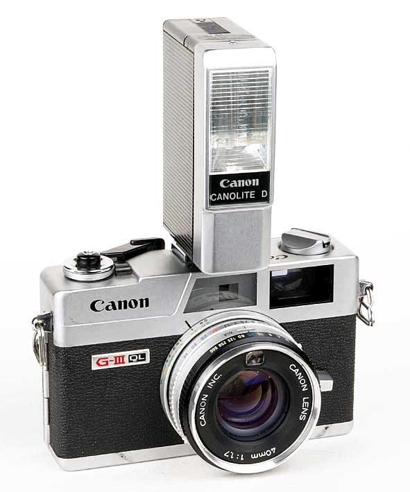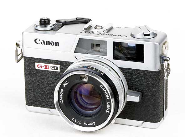 Caractéristiques : 1972, troisième génération de Canonet 17. Comme son nom l'indique, il est muni du système Quick Loading de chargement rapide du film.