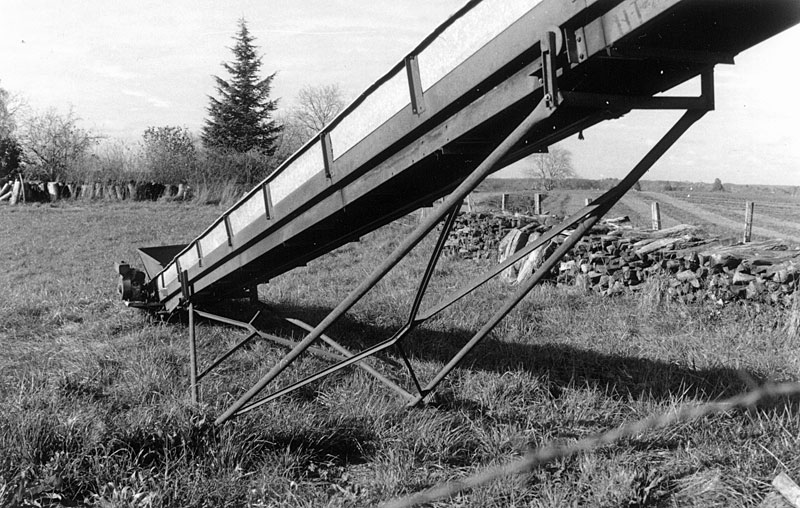 Un tapis roulant qui devait servir à charger le bois de chauffage dans les remorques.