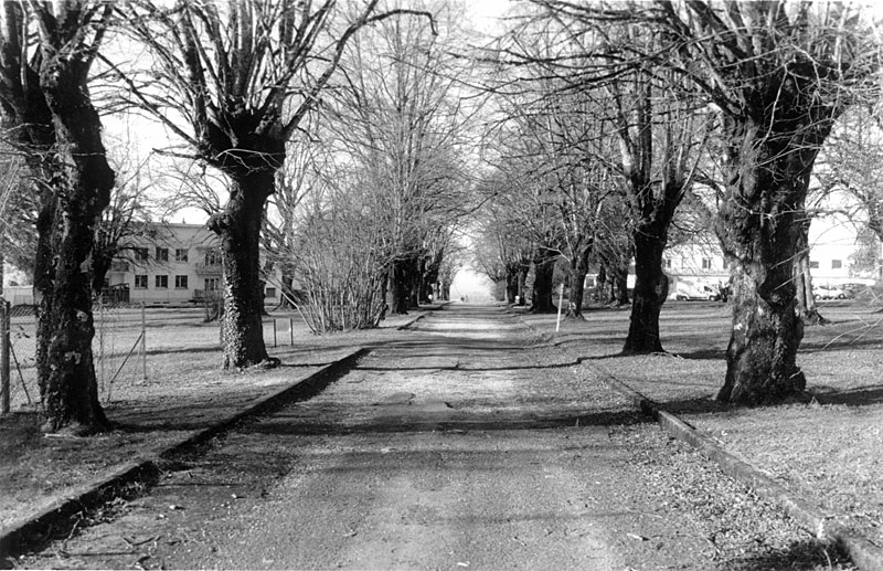 Un petit chemin dans le parc d'un hôpital vers Bourg-en-Bresse