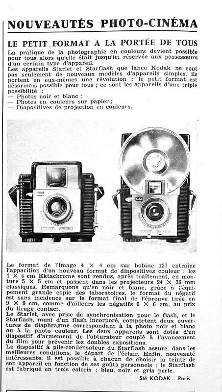 Caractéristiques : Identique au "Starlet Camera" Mais avec un flash incorporé à la partie haute de l'appareil. Construit entre 1957 et 1965.
